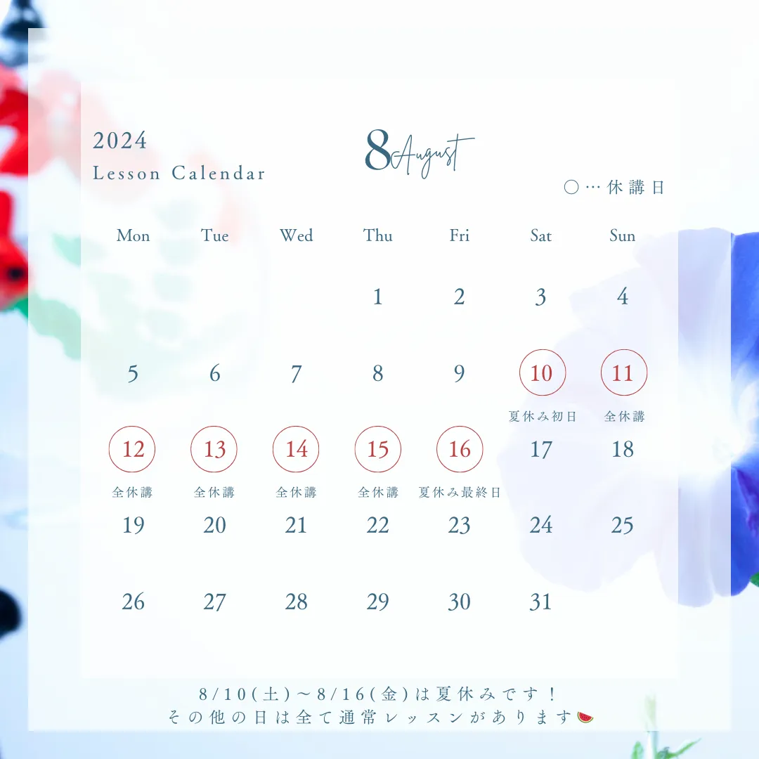 8月は鳥越久美子バレエアカデミーも夏休みシーズン。
