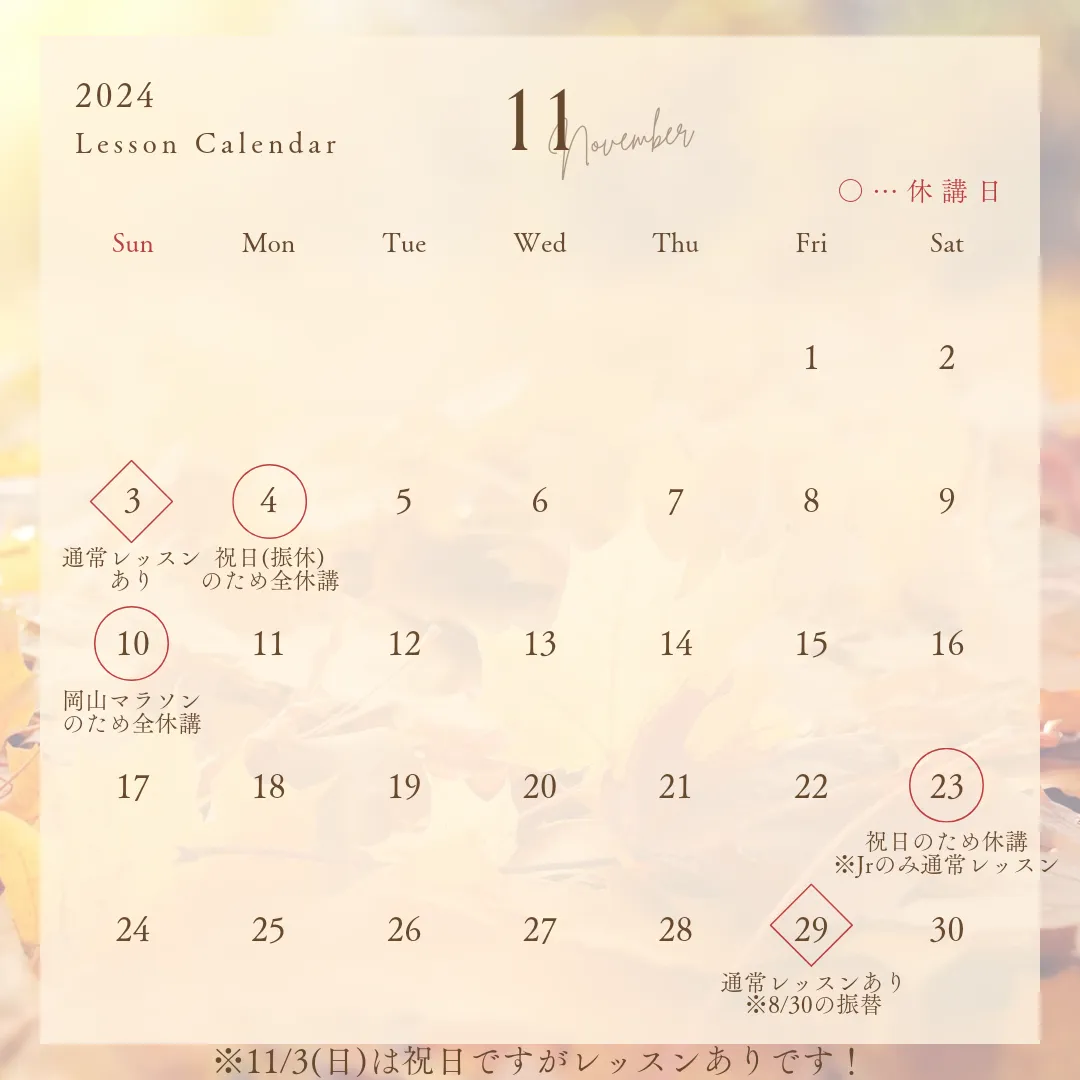 さて、11月のレッスンスケジュールです。