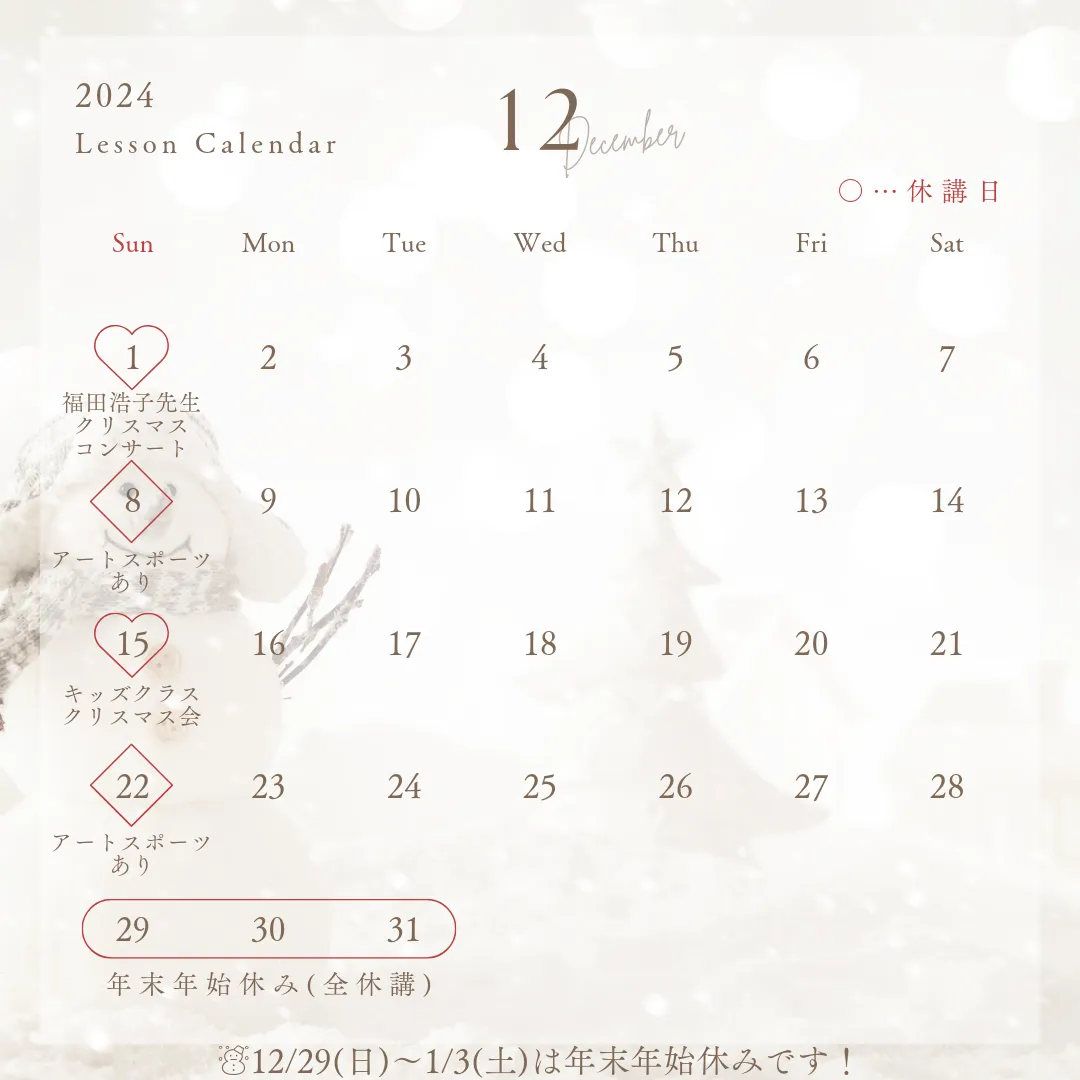 さて、鳥越久美子バレエアカデミーの12月のスケジュールです。