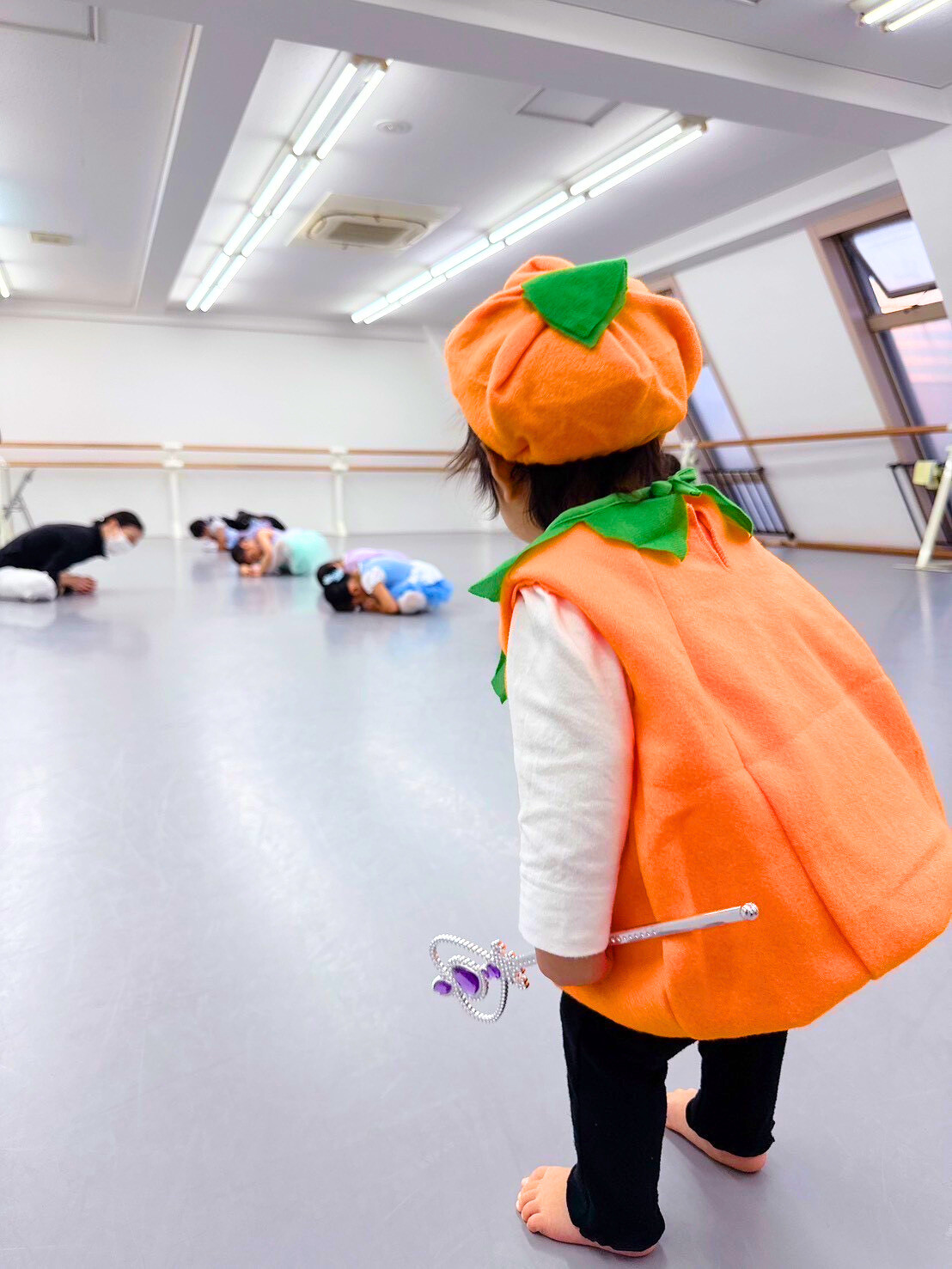 魔法の杖を片手に、キッズクラスのお姉ちゃんを見守るミニミニパンプキンの妖精さん🎃